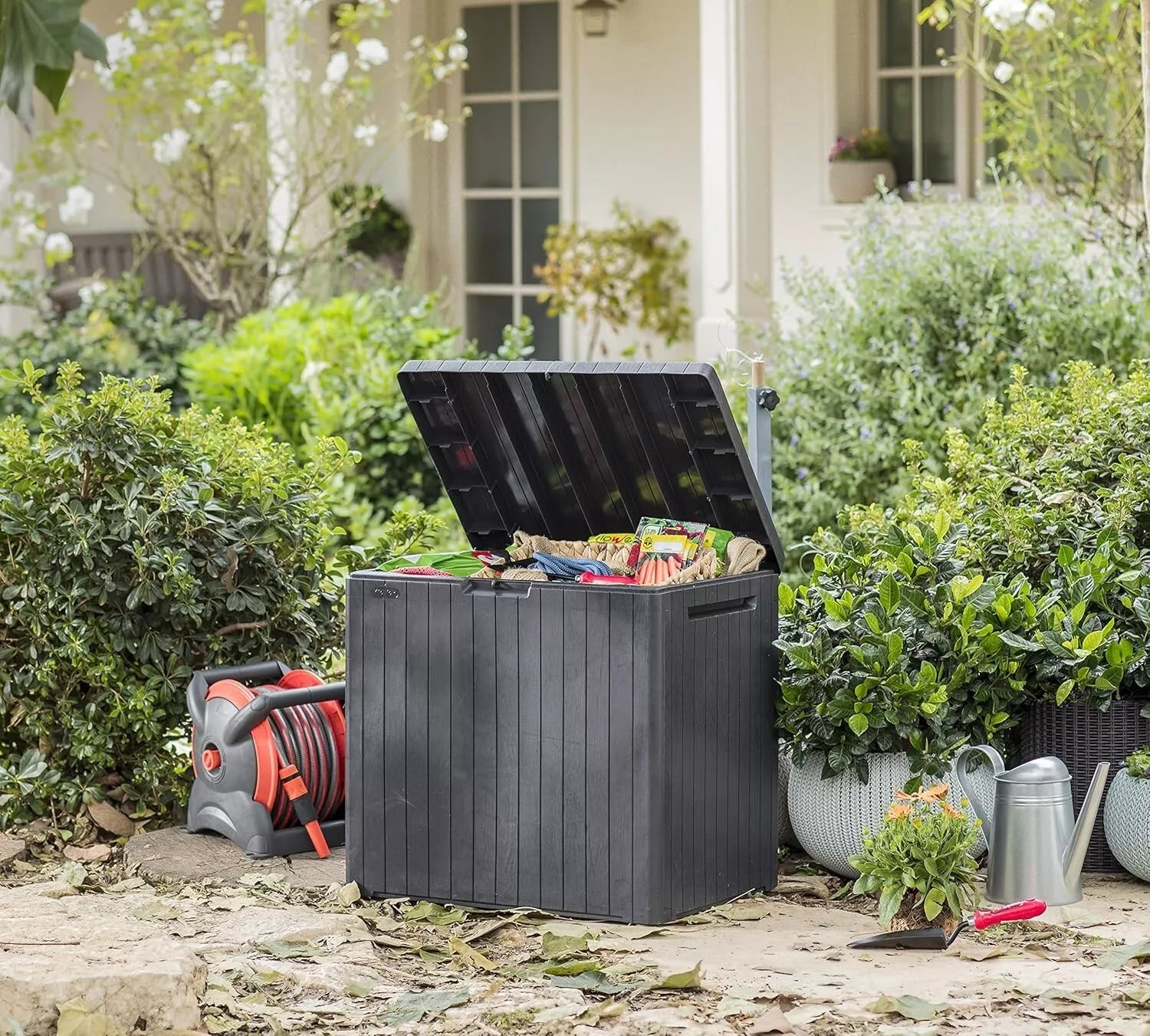 - Ideal outdoor garden storage box for garden tools and equipment, garden furniture cushions, garden games and accessories