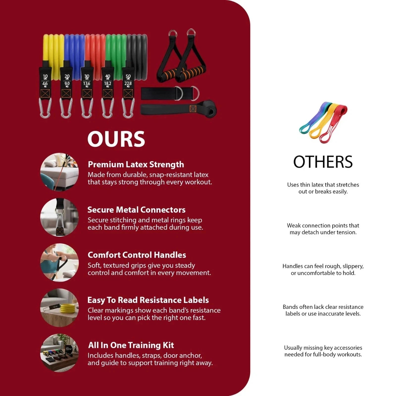 It comes with 5 High Qualirt Resistance Bands.