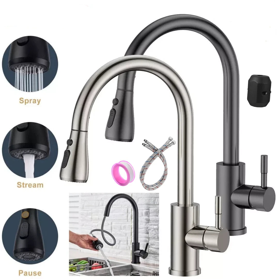 360° Kitchen Sink Mixer Taps Pull Out Spout Spray Single Lever Modern Mono Tap