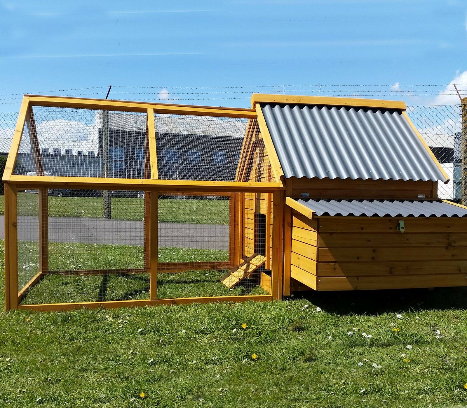 The 10002N measures – (including run, nest box and roof overhangs approx.) 240cm long 151cm wide and 112cm high.