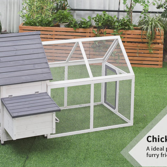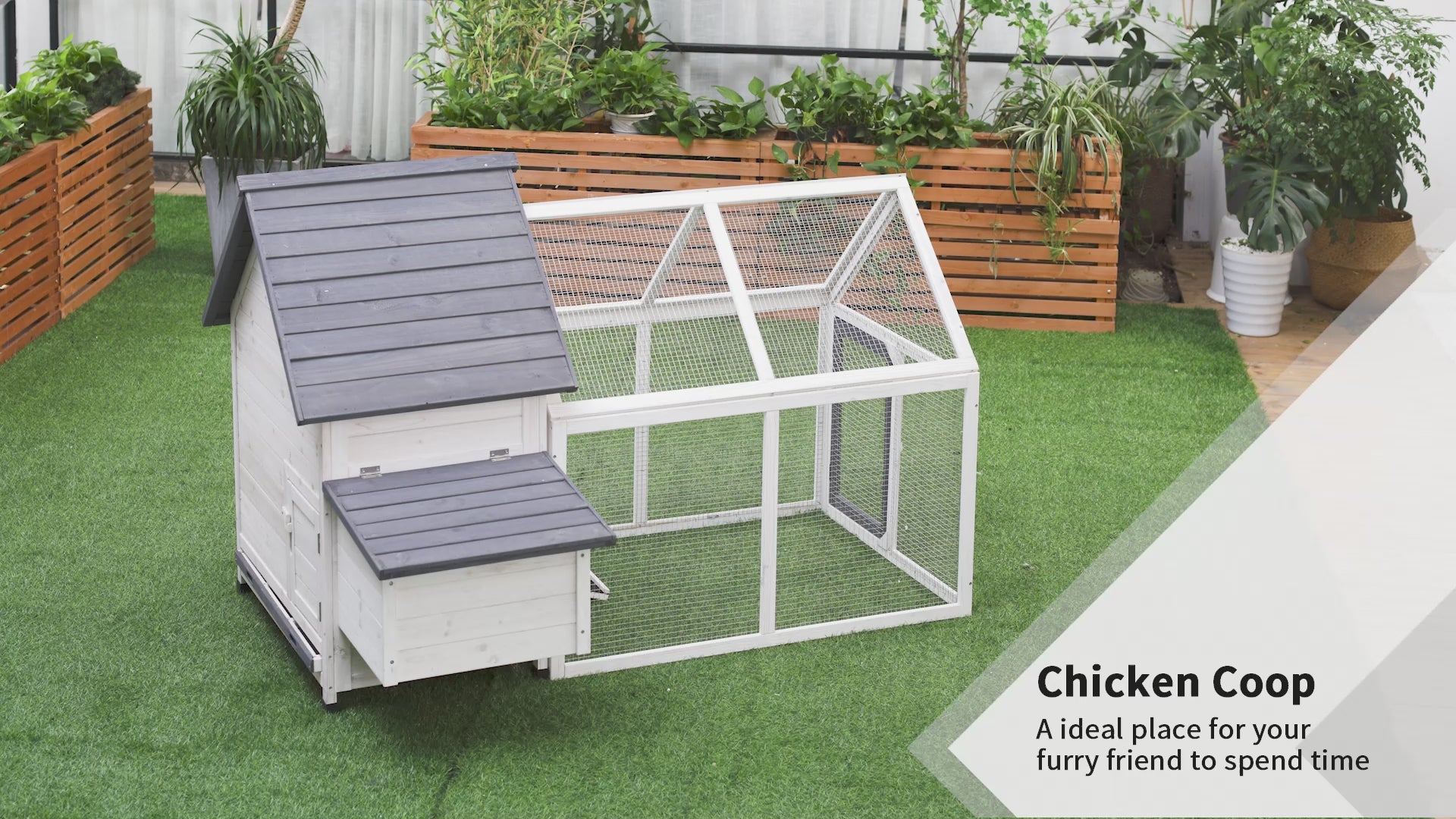 - This deluxe chicken coop, from PawHut, gives your outdoor pet the best of both worlds, thanks to the house and protected outdoor enclosure design. Made from weather-resistant fir wood, this piece is tough and suitable for outdoor use, with the metal wire fencing keeping them protected from escaping. Features a removable tray for easy cleaning. A stylish and functional living environment.