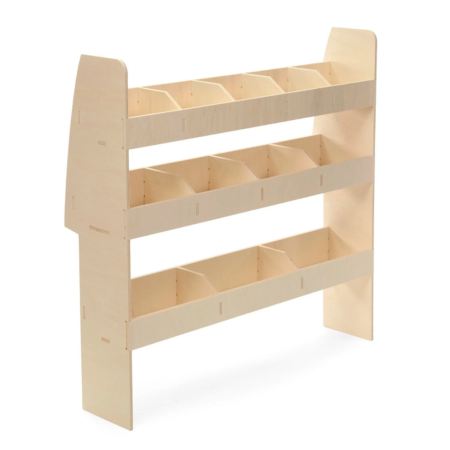 3 shelves with 12 storage compartments