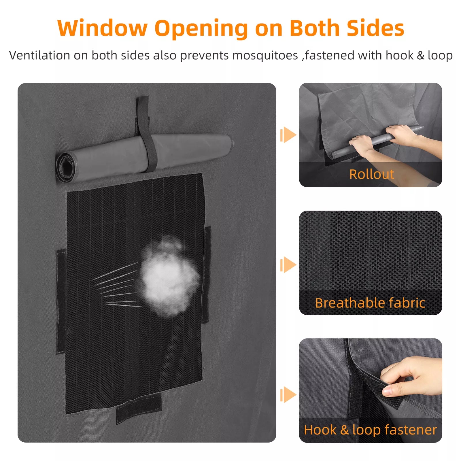 【Double Door & Ventilated Window】Dog kennel cover features double door, easy to roll up the flaps and secured with hook & loop, the windows on both sides for ventilation when covered on the cage, prevents mosquitoes, also fastened with hook & loop